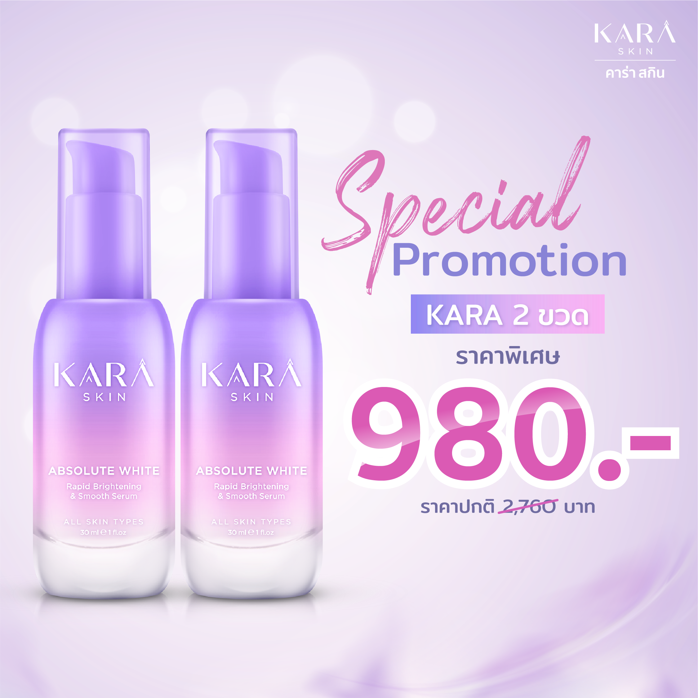 เซรั่มคาร่า 2 ขวด เซรั่มหน้าใส ลดฝ้า กระ จุดด่างดำ ภายใน 14 วัน
