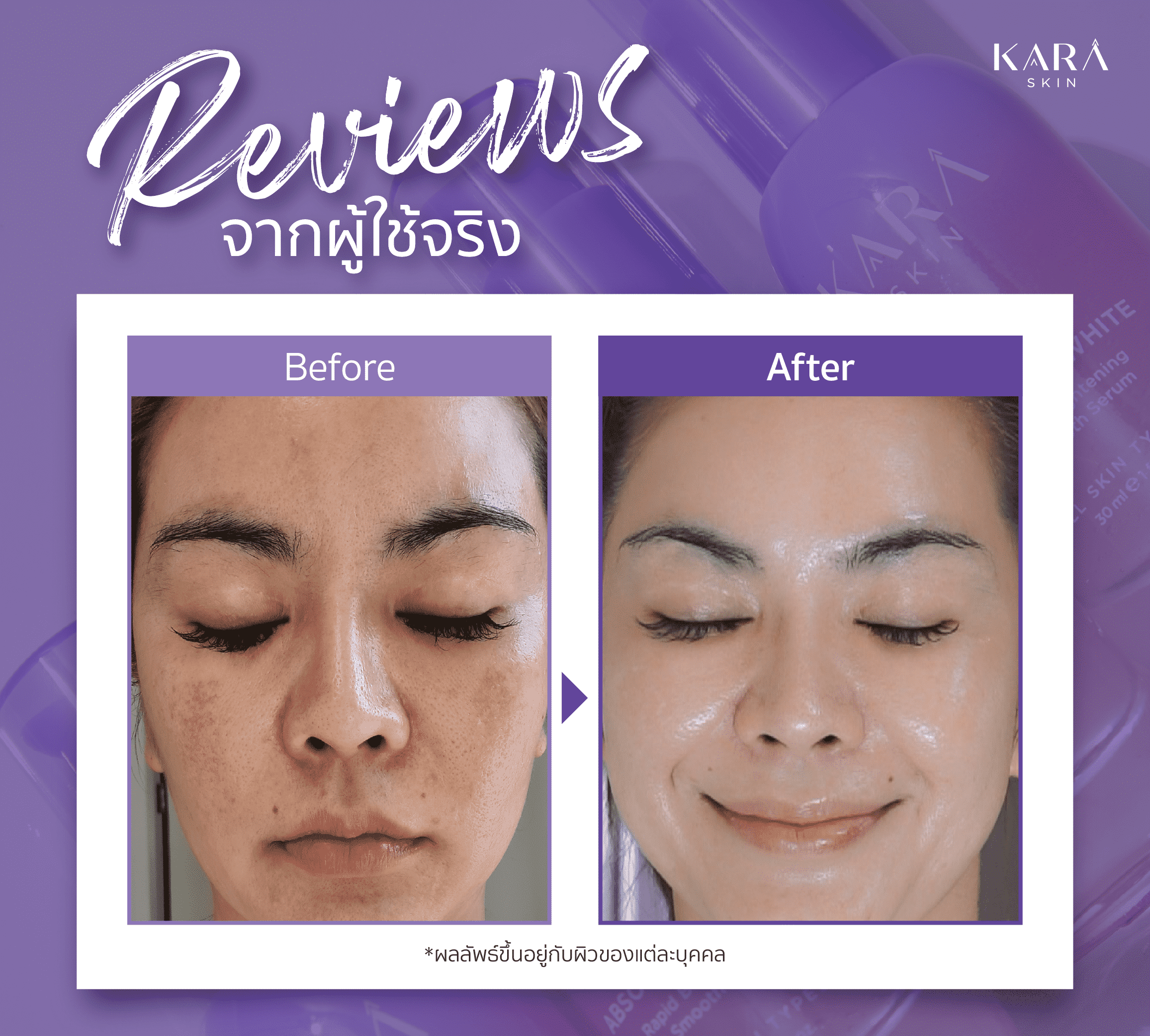 - ช่วยปรับผิวให้กระจ่างใส ลดเลือนฝ้ากระจากต้นตอ โดยไม่ทำให้ผิวบาง และไม่กลับมาคล้ำเสีย
